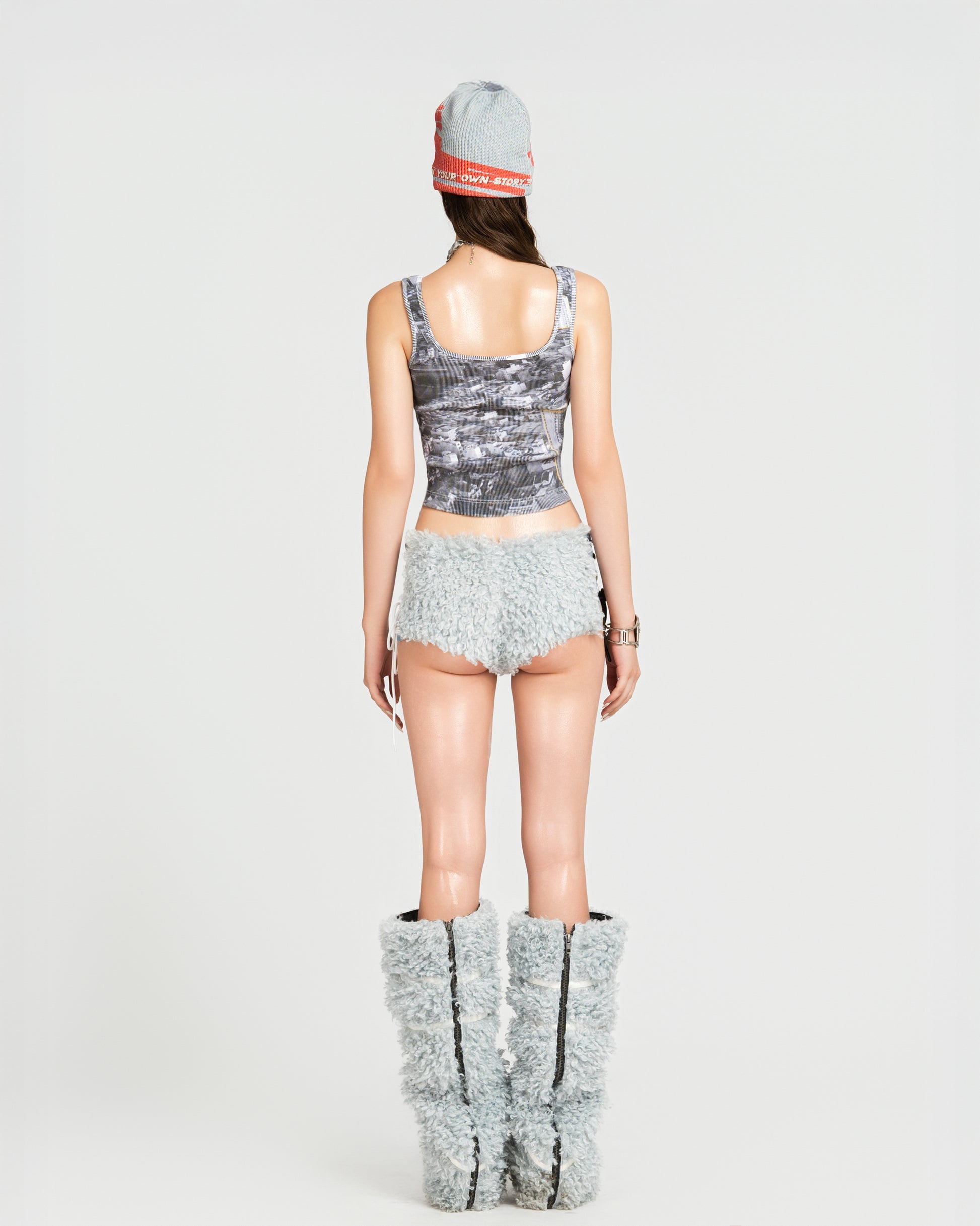 Detail: Gray printed pattern with intertwined imagery effect, fitted silhouette