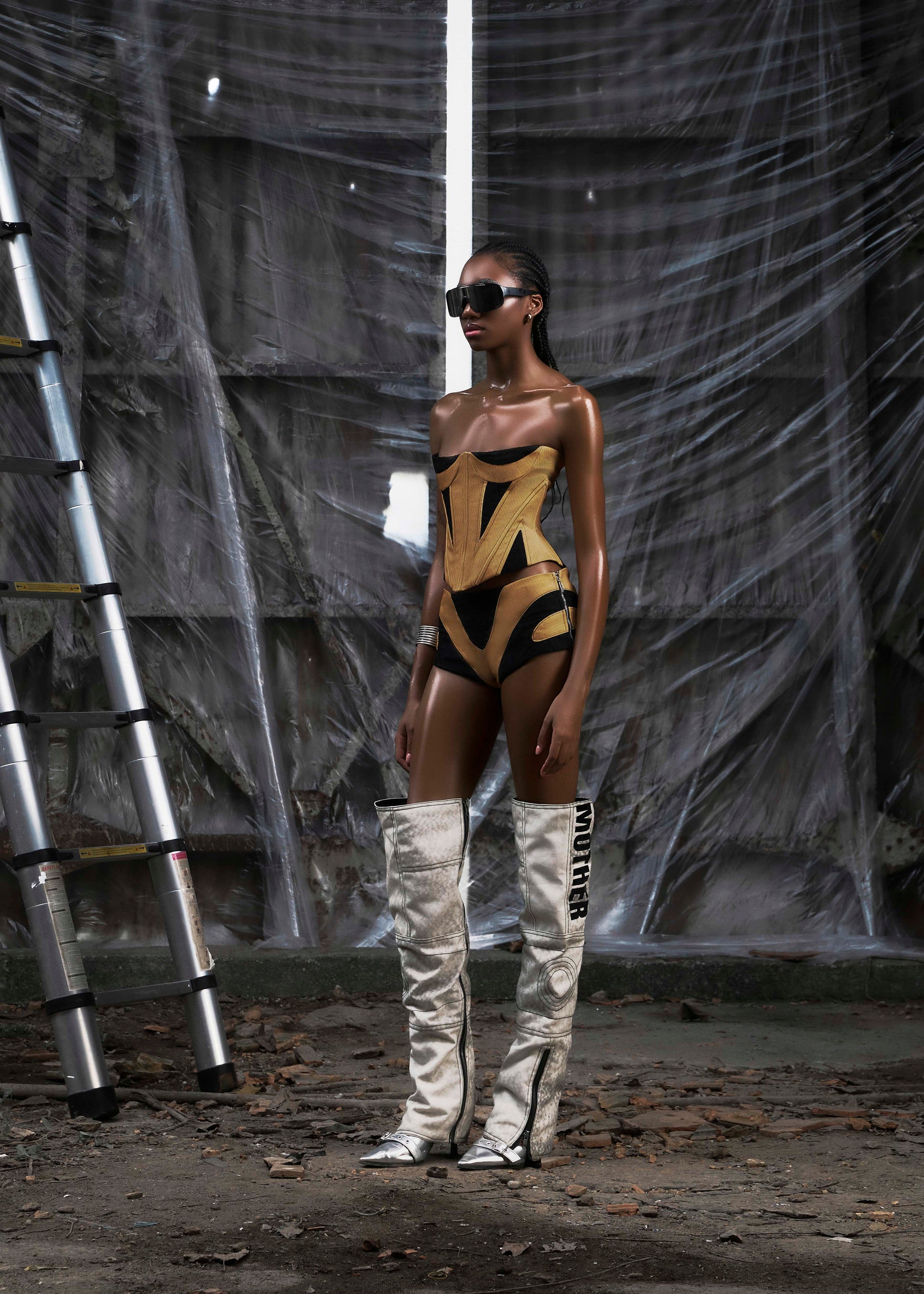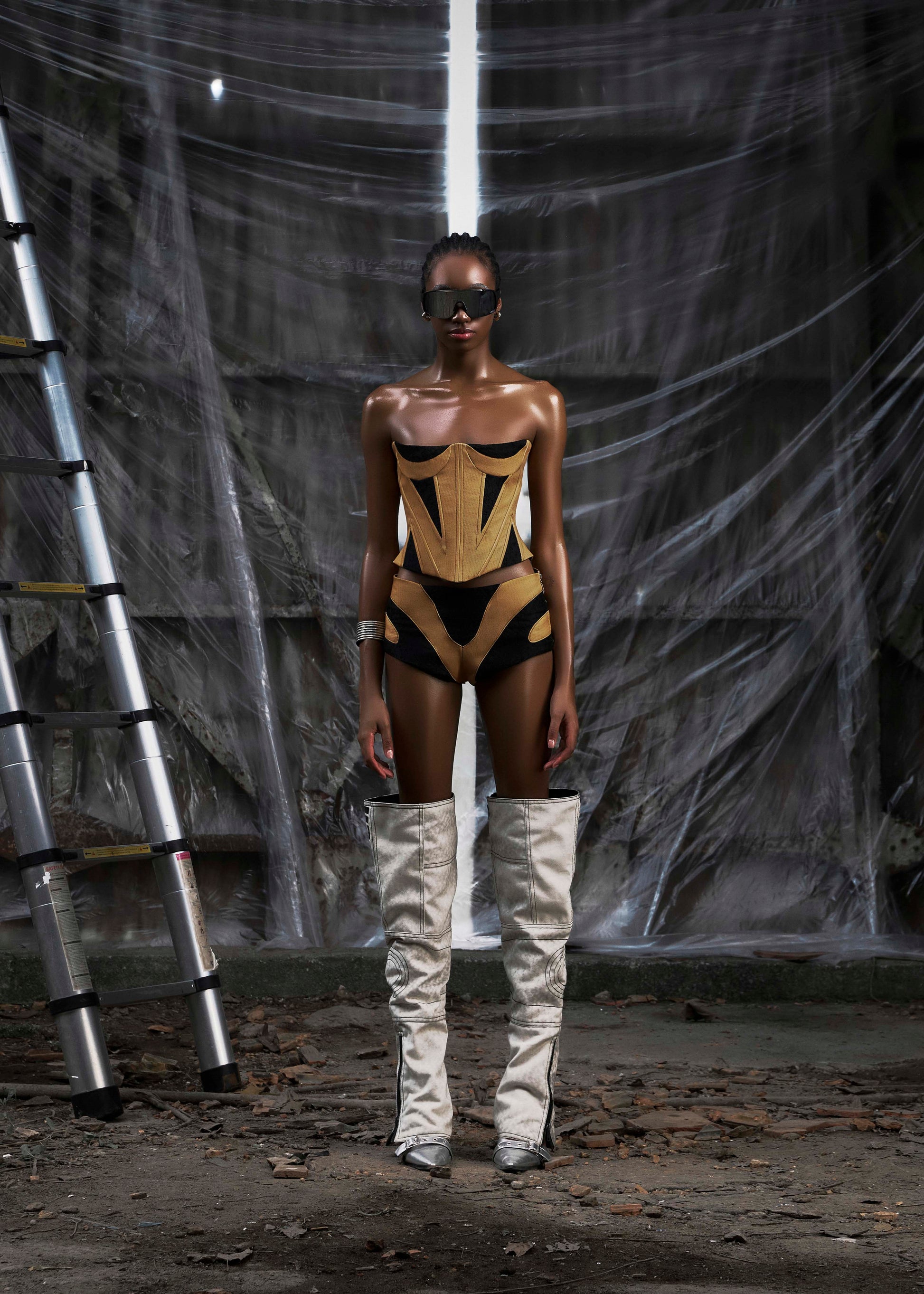 Detail: Lace pattern along the hem and front of the waistline, short enough to cover the hips, with side zipper